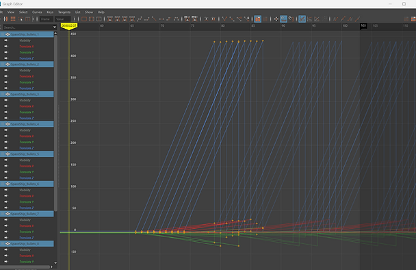 To tackle the direction of where the bullets fired, I manually moved the last keyframe of each bullet launch.